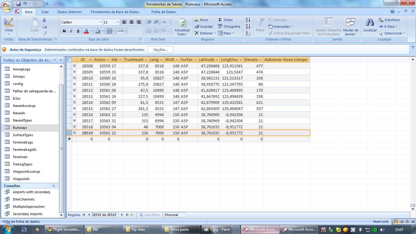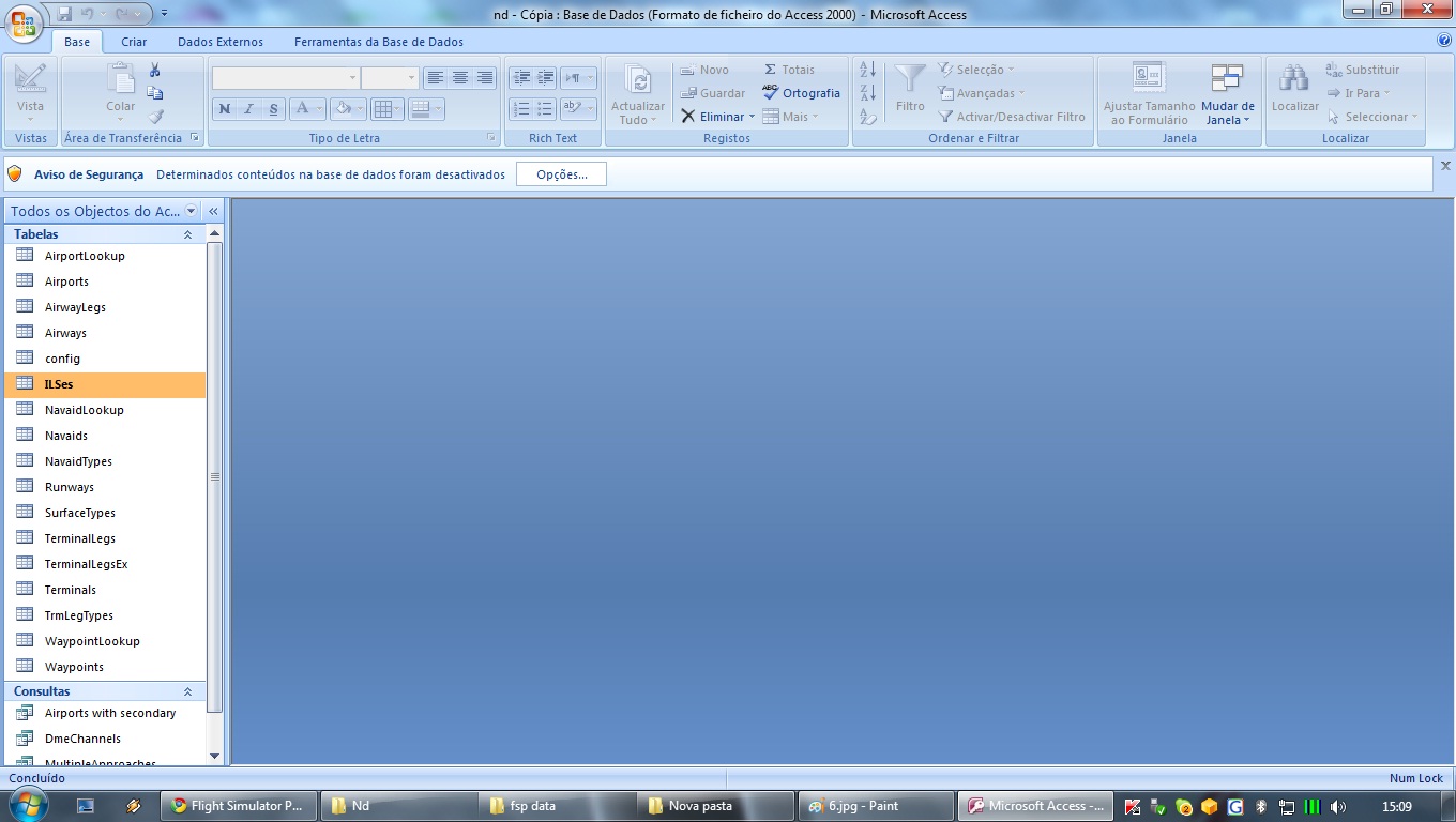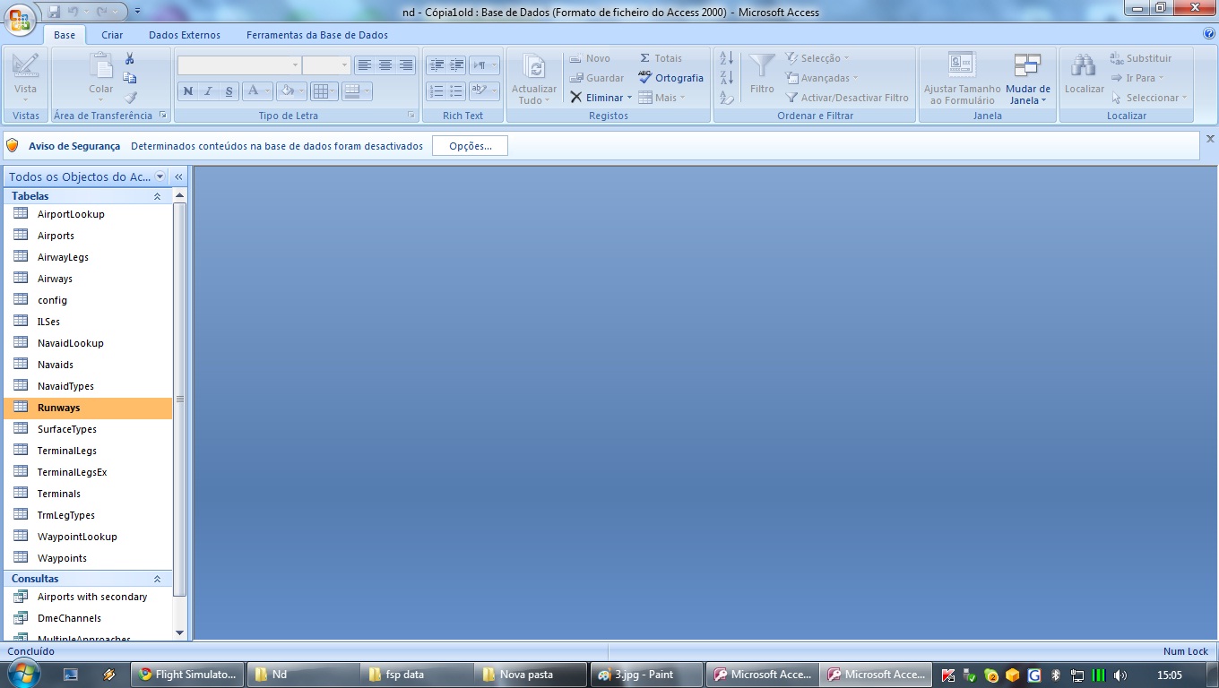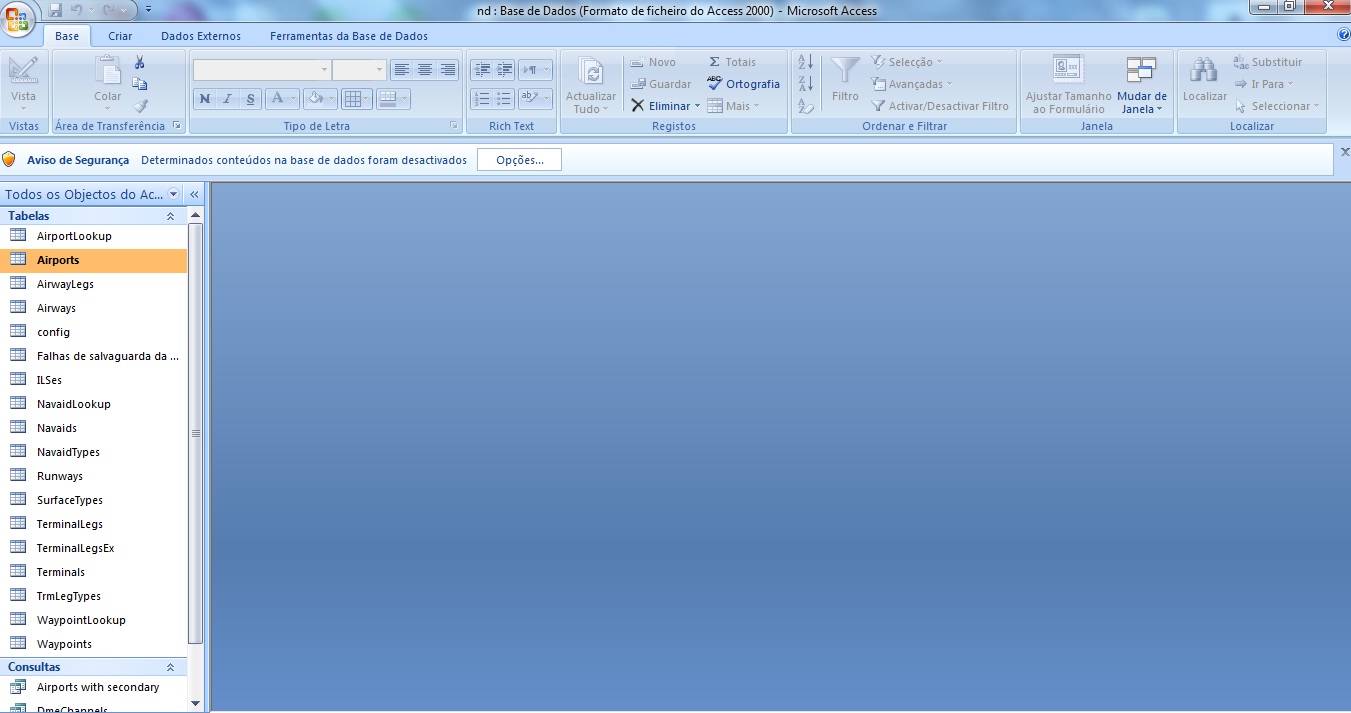 Na pasta "raiz" do FSX ir a FeelThere/Nd/ e abrir o ficheiro nd.mdb com o Access do Microsoft Office.
