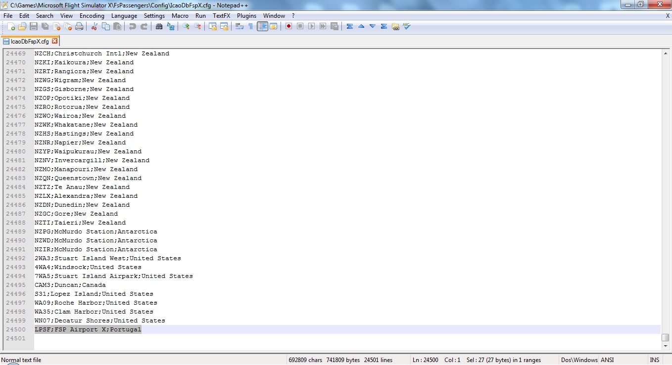 Na pasta "raiz" do FSX ir a FsPassengers/Config/ e abrir o IcaoDbFspX.cfg com um editor de texto (ex: notepad)
