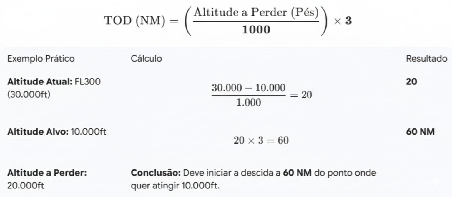 O TOD é a distância (em Milhas Náuticas - NM) que precisa para perder a altitude desejada.