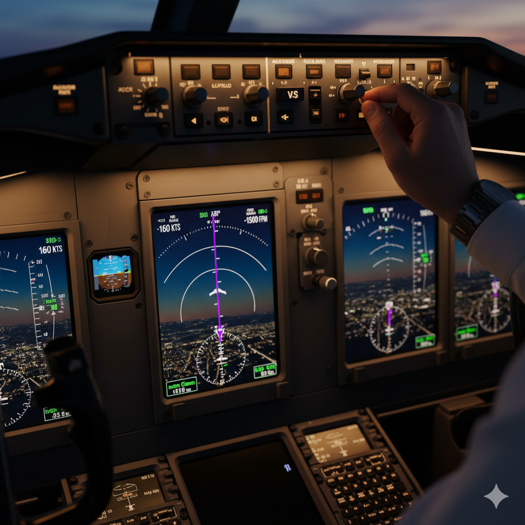 3. Aja no MCP/FCU: No seu painel de piloto automático (Mode Control Panel / Flight Control Unit):